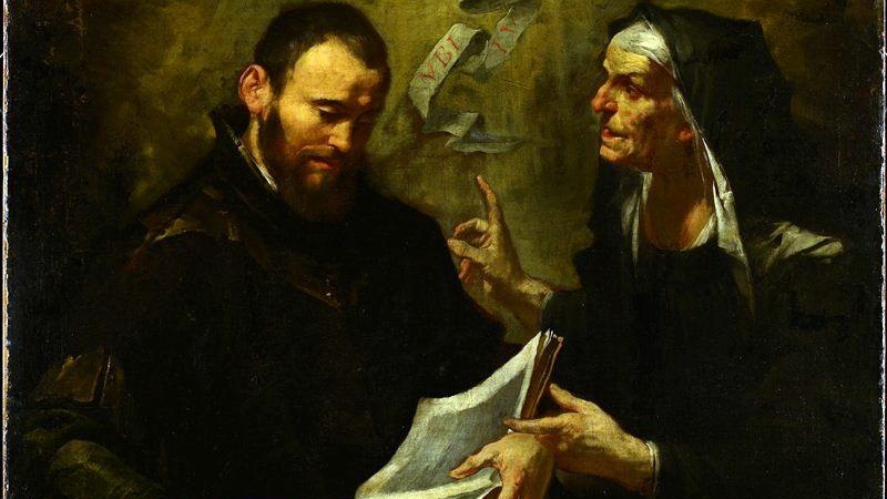[Malunek świętego Augustyna z mamą Moniką, z nosem i oczami zaczerwienionymi od płaczu uczynił Gioacchino Assereto]