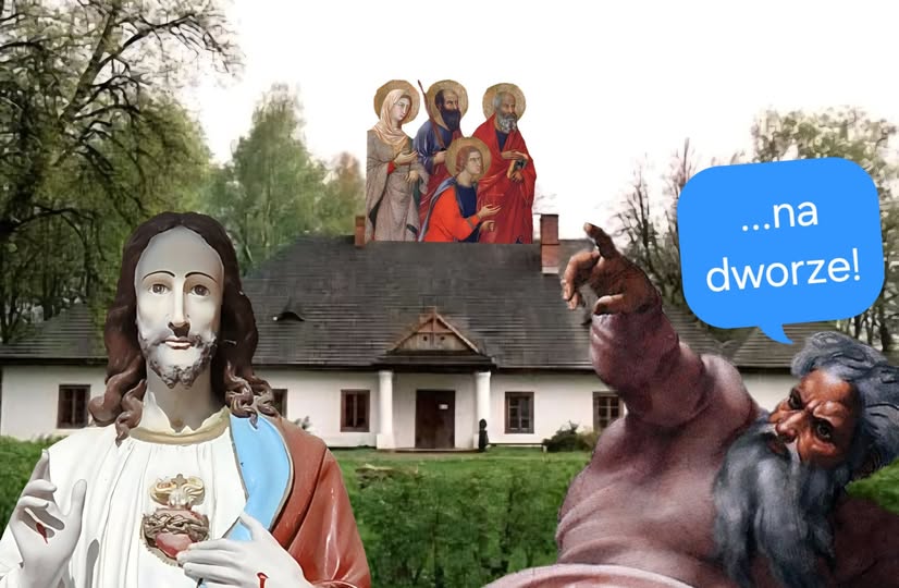 Swoja drogą zastanawiają mnie meandry toku myślenia translatorów. I nawet podejrzewam ich o spisek anty-polowy. Bowiem w oryginale greckim Ewangelii jest użyte słowo „ekso”, które nie oznacza ani „pola”, ani „dworu” ale po prostu „na zewnątrz”. W Nowym Testamencie słowo „ekso” pojawia się ponad 60 razy. Na przykład rybacy po połowie wyrzucają złe (niekoszerne) ryby „na zewnątrz” sieci. W dzień sądu niektórzy będą stać „na zewnątrz” i kołatać do drzwi, proszą „Panie, otwórz nam!”. Wskrzeszając córkę Jaira Jezus usuwa gapiów na zewnątrz. I tak dalej. Piotr zaparłszy się Jezusa, wychodzi na zewnątrz i płacze. A więc pukający do drzwi, gapie od Jaira i skruszony Piotr jakoś nie muszą być „na dworze”, a Matka Jezusa i Jego bracia już tak. A może ci gapie oraz Piotr są zazdrośni o „dwór” – myślę sobie. I jak tu zachować powagę?