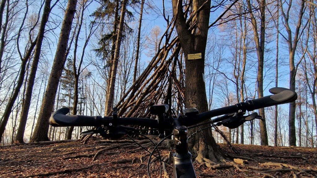 Niegdyś prowadził tutaj niebieski szlak. Ale ze względu na rzekomy brak zainteresowania został zlikwidowany. Tymczasem, w środku tygodnia i tak spotkałem czworo wędrowców. Tyle że ja – jak człowiek na rowerku. A oni na nogach, jak zwierzęta